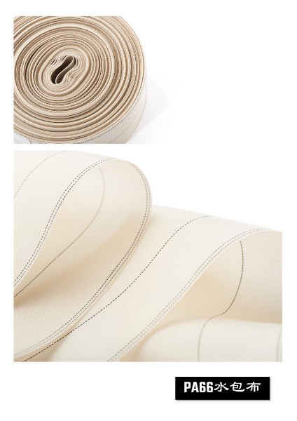 主要原料PA66是由己二酸和己二胺通过缩聚反应制得的热塑性树脂。制造时,先将PA66切片加热熔融后通过喷丝板挤出成丝,再经冷却、拉伸等工序制成PA66纤维,最后采用特定织造工艺,如平纹、斜纹织造等,将PA66纤维织造成具有一定密度和结构的水包布。
